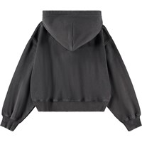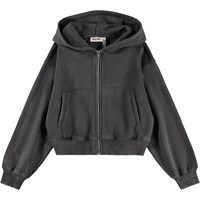 Grijze hoodie gemaakt van zachte, biologische katoen. De hoodie heeft een ruimvallende pasvorm met een rits aan de voorkant, een capuchon, zijzakken en ribboorden rond de mouwen en onderkant.