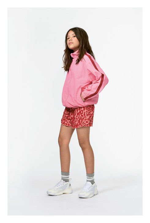 Mates is een roze trainingsjas met een ritssluiting en een bordeaux rode streep langs de mouwen. De jas heeft een rits aan de voorkant. Draag de jas met bijpassende broek voor een coole en complete look.