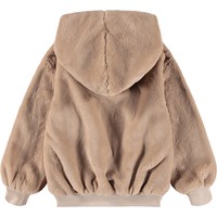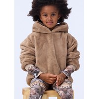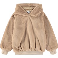 Fluffy bruine hoodie in nepbont. De hoodie heeft ribboorden en een ruimvallende pasvorm.