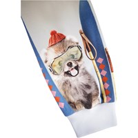 Lichtblauwe sweater van biologisch katoen. De sweater heeft een ruimvallende pasvorm, een ronde hals, ribboorden en een print van dieren op skivakantie.