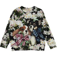 Maxi is een gebloemde sweater met twee kleine honden verstopt tussen de bloemen.