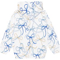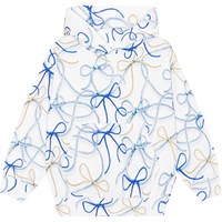 Witte hoodie van biologisch katoen met een print van zeemansknopen in beige/blauwe tinten. Er is een ribboord rond de mouwen en de onderkant, die in dezelfde stof is als de hoodie. De hoodie heeft aan de voorkant een buidelzak.