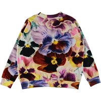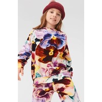 Mika is een fluwelen sweater met een print van grote bloemen. Draag de trui met de bijpassende broek.