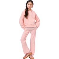 Perzikkleurige hoodie gemaakt van zachte, biologische katoenen badstof met ribboorden rond de mouwen en onderkant. De hoodie heeft een ruimvallende en relaxte pasvorm met aan de voorkant een kangoeroezak en een klein logo met de tekst 'Better together'.