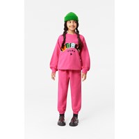 Roze sweater van biologisch katoen met een gevoerde binnenkant, waardoor het zacht en warm is om te dragen. De sweater heeft een ruime pasvorm met een ronde hals en geribbelde boorden aan de mouwen, hals en zoom. Voor een complete set kun je de sweater combineren met een bijpassende broek.