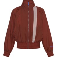 Olena is een bruine trainingsjas met een lichtroze streep aan de voorkant. De jas heeft een hoge kraag en een ritssluiting. Draag de jas met bijpassende broek uit de sportcollectie. Olena zorgt voor comfort en flexibiliteit zodat je je onbeperkt kunt bewegen. Deze jas maakt deel uit van Molo's sportcollectie, die sport en mode integreert. Molo's sportcollectie is gemaakt met een unieke, hoogwaardige technologie genaamd HeiQ Smart Temp, die het lichaam ondersteunt om af te koelen. De afkoelfunctie wordt geactiveerd wanneer het lichaam warm en zweterig is. Het wordt gedeactiveerd wanneer het lichaam is afgekoeld. HeiQ Smart Temp zorgt voor optimale prestaties en comfort. Onafhankelijk getest op huidveiligheid.
