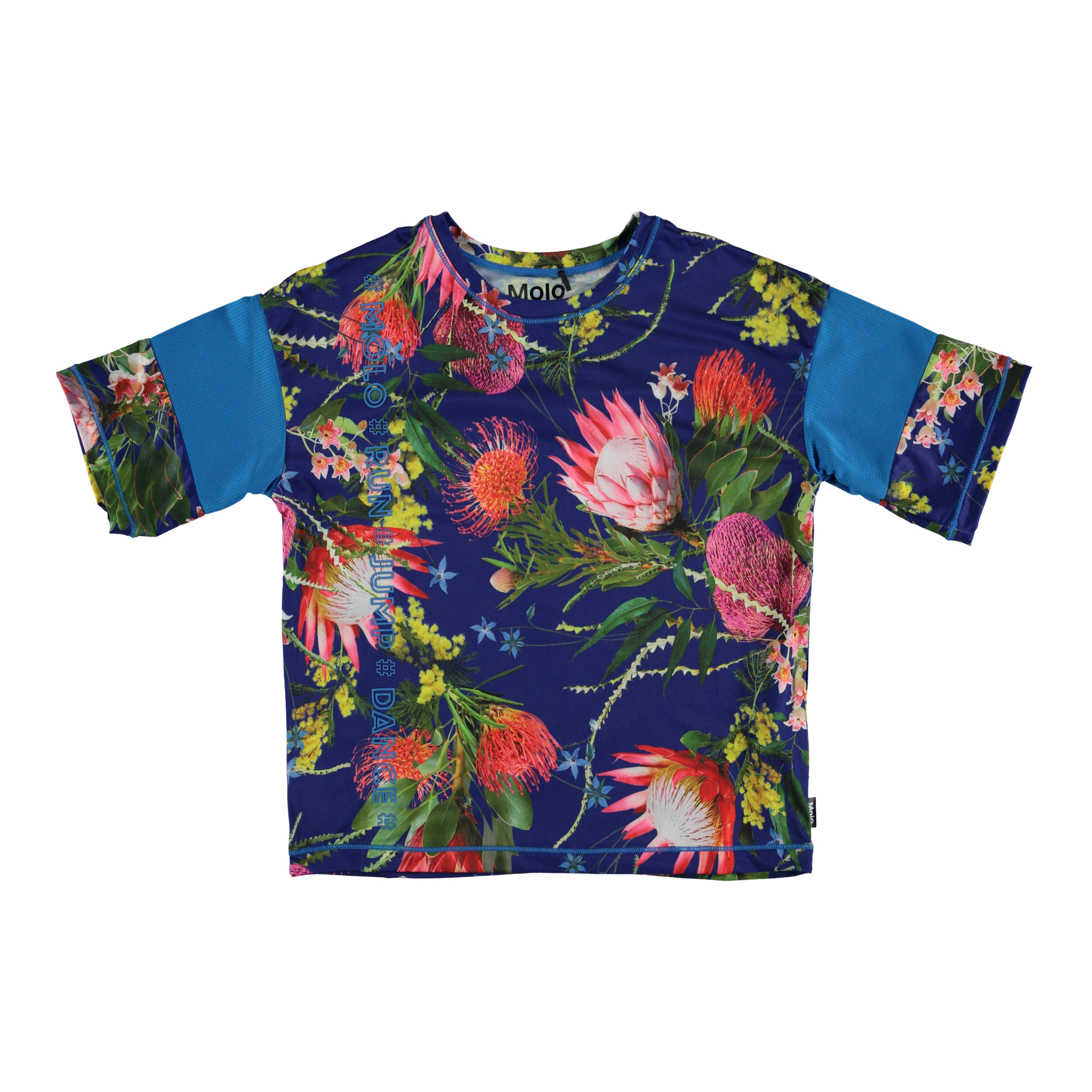 Odessa is een gebloemde t-shirt met een comfortabele, wijde pasvorm. Het t-shirt heeft een brede, koraalrode streep op elke mouw. Odessa maakt deel uit van Molo's nieuwe sportcollectie, die mode en sport nauw met elkaar verbindt. Het t-shirt is comfortabel en gemaakt van technische materialen die geschikt zijn voor zowel intense activiteit als ontspannen momenten. Molo's sportcollectie is gemaakt met een unieke, hoogwaardige technologie genaamd HeiQ Smart Temp, die het natuurlijke vermogen van het lichaam ondersteunt om zichzelf af te koelen. • De koelfunctie wordt geactiveerd wanneer je warm bent en zweet. • De koelfunctie wordt gedeactiveerd wanneer het lichaam is afgekoeld. • HeiQ Smart Temp zorgt voor optimale prestaties en comfort. • Onafhankelijk getest op veiligheid voor het lichaam. •