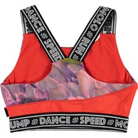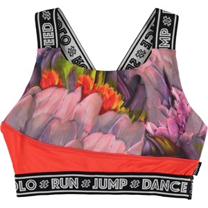 Oliva is een kort blauwe gebloemde sporttop met brede schouderbanden met tekstprint. De top kan worden gebruikt als een functionele top of onder Molo's sportjas als een cool detail. Olivia maakt deel uit van Molo's nieuwe sportcollectie, die mode en sport nauw met elkaar verbindt. De sporttop is comfortabel en gemaakt van technische materialen die geschikt zijn voor zowel intense activiteit als ontspannen momenten. Molo's sportcollectie is gemaakt met een unieke, hoogwaardige technologie genaamd HeiQ Smart Temp, die het natuurlijke vermogen van het lichaam ondersteunt om zichzelf af te koelen. • De koelfunctie wordt geactiveerd wanneer je warm bent en zweet. • De koelfunctie wordt gedeactiveerd wanneer het lichaam is afgekoeld. • HeiQ Smart Temp zorgt voor optimale prestaties en comfort. • Onafhankelijk getest op veiligheid voor het lichaam. •