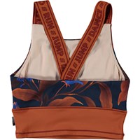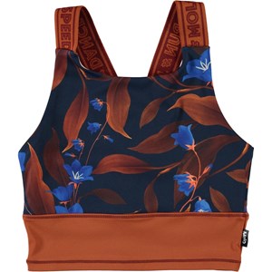 Oliva is een blauwe sporttop met een print van bruine bladeren en blauwe bloemen en een bruine onderstuk. Het heeft brede bruine schouderbandjes met een Molo-tekstprint. De top is perfect onder Molo's sportjas. Olivia maakt deel uit van Molo's sportcollectie, die mode en sport naadloos integreert. De top is comfortabel en gemaakt van technische materialen waardoor het te gebruiken is voor een intensieve work-out of ontspanning. Molo's sportcollectie is gemaakt met een unieke, hoogwaardige technologie genaamd HeiQ Smart Temp, die het lichaam ondersteunt om af te koelen. De afkoelfunctie wordt geactiveerd wanneer het lichaam warm en zweterig is. Het wordt gedeactiveerd wanneer het lichaam is afgekoeld. HeiQ Smart Temp zorgt voor optimale prestaties en comfort. Onafhankelijk getest op huidveiligheid.