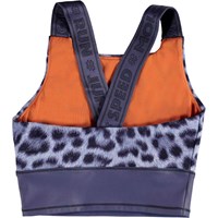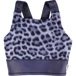 Oliva is een blauwe sporttop met een luipaardprint. Het heeft brede blauwe schouderbandjes met tekst en de onderste boord heeft dezelfde kleur. De top is perfect onder Molo's sportjas. Olivia maakt deel uit van Molo's nieuwe sportcollectie, die sport en mode integreert. De top is comfortabel en gemaakt van technische materialen die het zowel voor vrije tijd als voor intensieve activiteiten draagbaar maakt. De sportcollectie van Molo is gemaakt met een unieke hoogwaardige technologie genaamd HeiQ Smart Temp, die het lichaamseigen vermogen om af te koelen ondersteunt. De afkoelfunctie wordt geactiveerd wanneer het lichaam warm en zweterig wordt en wordt vervolgens uitgeschakeld wanneer het lichaam is afgekoeld. HeiQ Smart Temp zorgt voor optimaal comfort en prestaties. Het is onafhankelijk getest om er zeker van te zijn dat het veilig is voor de huid.