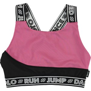 Oliva is een korte roze en zwarte top met brede schouderbandjes met een tekstprint. De top is perfect onder Molo's sportjas. Olivia maakt deel uit van Molo's sportcollectie, die helpt bij het integreren van sport en mode. De top is comfortabel en gefabriceerd met technische materialen wat het draagbaar maakt voor vrije tijd en intense activiteit. De sportcollectie van Molo is gemaakt met een unieke, hoogwaardige technologie genaamd HeiQ Smart Temp, die het lichaam ondersteunt om af te koelen. De afkoelfunctie wordt geactiveerd wanneer het lichaam warm en zweterig wordt en schakelt vervolgens uit wanneer het lichaam is afgekoeld. HeiQ Smart Temp zorgt voor optimaal comfort en prestaties. Het is onafhankelijk getest om te garanderen dat het veilig is voor de huid.