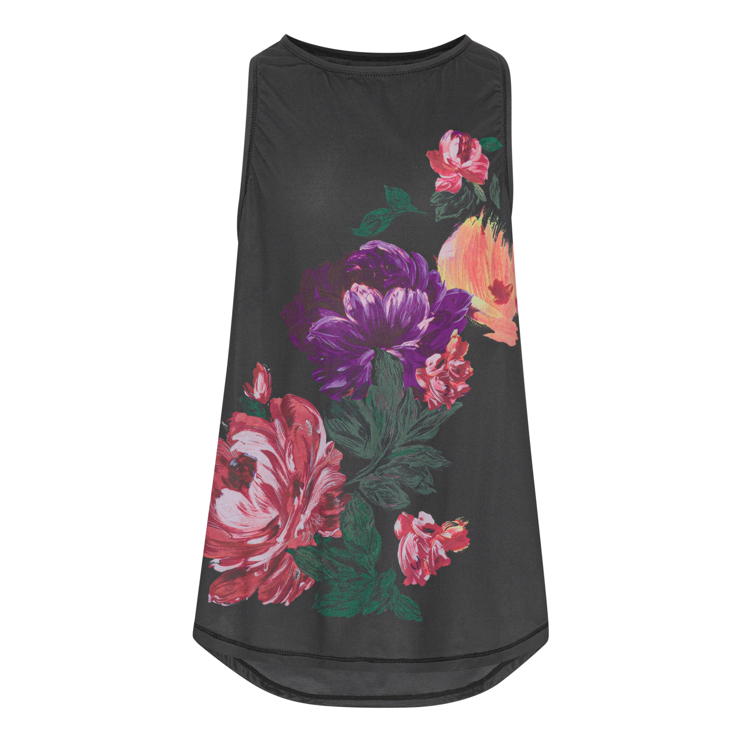 Zwarte sportshirt met een print van een bloemmotief in diepe rijke kleuren met zichtbare penseelstreken. Het shirt is comfortabel en gemaakt van technische materialen waardoor het zowel tijdens rust als tijdens intensieve activiteiten kan worden gedragen. De sportcollectie van Molo is gemaakt met een unieke, hoogwaardige technologie genaamd HeiQ Smart Temp, die het lichaam ondersteunt om af te koelen. De afkoelfunctie wordt geactiveerd wanneer het lichaam warm en zweterig is. Het wordt gedeactiveerd wanneer het lichaam is afgekoeld. HeiQ Smart Temp zorgt voor optimaal comfort en prestatie. Het is onafhankelijk getest om er zeker van te zijn dat het veilig is voor de huid.