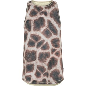 Oriana is a sports top in a giraffe print with a light yellow back. The top is part of Molo's sports collection, which helps integrate sports and fashion. it is comfortable and constructed in technical materials that make it wearable for down time as well as intense activity. Molo’s sports collection is created with a unique, high performance technology called HeiQ Smart Temp, which supports the body's own ability to cool down. The cool down function is activated when the body gets warm and sweaty, and then turns off when the body has cooled down. HeiQ Smart Temp ensures optimal comfort and performance. It has been independently tested to ensure that it is safe for the skin.