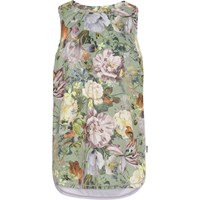 Oriana is een sportieve top in lichtgroen met bloemenprint. Het heeft een lichtpaarse achterkant met brede bandjes met tekst. De top is onderdeel van Molo’s sportcollectie, die sport en mode integreert. De top is comfortabel en gemaakt van technische materialen, waardoor het zowel voor vrije tijd als voor intensieve activiteiten gedragen kan worden. Molo’s sportcollectie is gemaakt met een unieke en hoogwaardige technologie genaamd HeiQ Smart Temp, die het lichaam ondersteunt om af the koelen. De afkoelfunctie wordt geactiveerd wanneer het lichaam warm en zweterig is. Het wordt gedeactiveerd wanneer het lichaam is afgekoeld. HeiQ Smart Temp zorgt voor optimaal comfort en prestaties. Het is onafhankelijk getest om er zeker van te zijn dat het veilig is voor de huid.