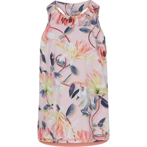 Oriana is een lichtroze sporttop met een delicate bloemenprint en een koraalkleurige achterkant met brede blauwe strepen met tekst. De top maakt deel uit van Molo's nieuwe sportcollectie, die sport en mode integreert. De top is comfortabel en gemaakt van technische materialen die het zowel voor vrije tijd als voor intensieve activiteiten draagbaar maakt. De sportcollectie van Molo is gemaakt met een unieke hoogwaardige technologie genaamd HeiQ Smart Temp, die het lichaamseigen vermogen om af te koelen ondersteunt. De afkoelfunctie wordt geactiveerd wanneer het lichaam warm en zweterig wordt en wordt vervolgens uitgeschakeld wanneer het lichaam is afgekoeld. HeiQ Smart Temp zorgt voor optimaal comfort en prestaties. Het is onafhankelijk getest om er zeker van te zijn dat het veilig is voor de huid.