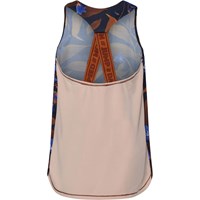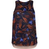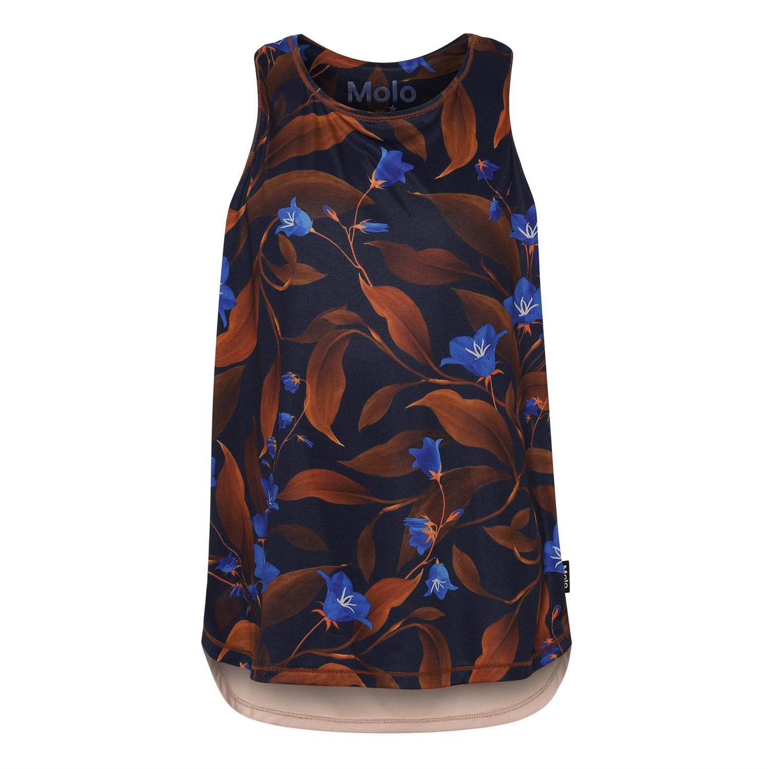Oriana is een blauwe sporthemdje met bruine en blauwe bloemen en een lichtroze achterkant met brede bandjes met tekst. Het hemdje maakt deel uit van Molo's sportcollectie, die mode en sport naadloos integreert. Het is comfortabel en gemaakt van technische materialen. Molo's sportcollectie is gemaakt met een unieke, hoogwaardige technologie genaamd HeiQ Smart Temp, die het lichaam ondersteunt om af te koelen. De afkoelfunctie wordt geactiveerd wanneer het lichaam warm en zweterig is. Het wordt gedeactiveerd wanneer het lichaam is afgekoeld. HeiQ Smart Temp zorgt voor optimale prestaties en comfort. Onafhankelijk getest op huidveiligheid.