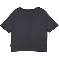 Rabecke is een donkerpaarse t-shirt. Het t-shirt is ruimvallend en heeft afhangende schouders.