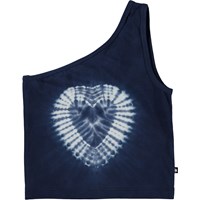 Rabia is een korte asymmetrische hemdje met een enkele schouderbandje. Het hemdje is donkerblauwe met op de voorkant een print van een tie-dye hart.