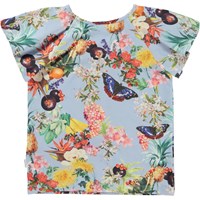 Rachel is een t-shirt van biologisch katoen met luchtige raglanmouwen. Het t-shirt is in de Tropical Fruit print, waarop trossen tropische fruit, bloemen en vlinders staan.
