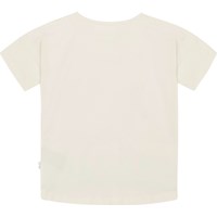 Witte biologische katoenen t-shirt met mouwen. Het t-shirt heeft een mooie pasvorm en is langer aan de achterkant. Op de voorkant staat een print van een paard op een tropisch strand.