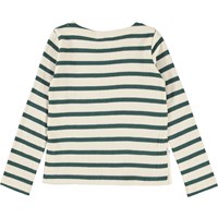 Rafina is een lichtgekleurde longsleeve met groene streepjes.