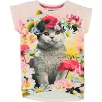Ragnhilde is een t-shirt met een humoristische print van een grijze kat met een bloemenkrans op zijn hoofd. Het t-shirt is van 100% katoen.