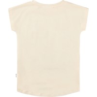 Gebroken wit T-shirt gemaakt van zachte, biologische katoen met een ribboord rond de hals en een langere achterkant. Het T-shirt heeft een normale pasvorm en een schattige print van kat omringd door kleurrijke zomerbloemen.