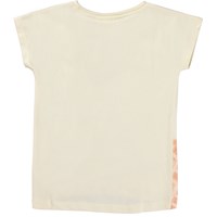 Roze t-shirt met korte mouwen van 100% biologisch katoen met een print van een grote lekkere softijs in alle kleuren van de regenboog. Het t-shirt heeft een ronde hals met een ribboord. Het is iets langer aan de achterkant en heeft een normale pasvorm.