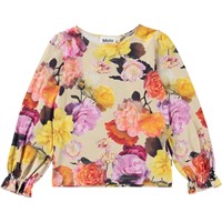 Raina is een biologische top met lange mouwen in de Rose Garden print waarop alle rozen uit de tuin zijn afgebeeld. Het heeft volle mouwen met elastiek dat een ruffle effect bij de manchetten creëert."