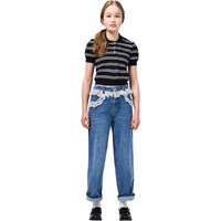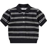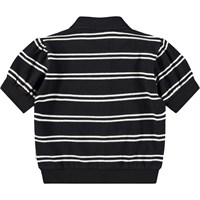 Polo met korte mouwen gemaakt van zachte, biologische katoenen jersey met smalle strepen in wit en zwart. De polo heeft een klassieke kraag, knoopsluiting aan de voorkant en een ribboord, wat zorgt voor een ontspannen pasvorm met een sportieve uitstraling.