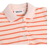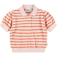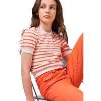 Polo met korte mouwen gemaakt van zachte, biologische katoenen jersey met smalle strepen in oranje en lichtroze. De polo heeft een klassieke kraag, knoopsluiting aan de voorkant en een ribboord, wat zorgt voor een ontspannen pasvorm met een sportieve uitstraling.