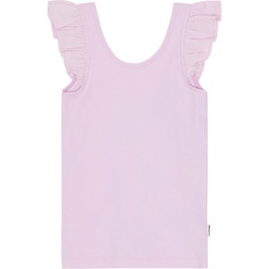 Paars hemdje van zacht biologisch katoen. Het heeft een aanlsuitende pasvorm en een poplin-ruche op de schouders.