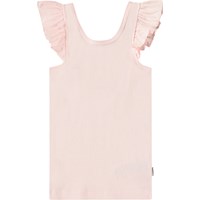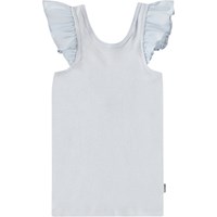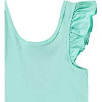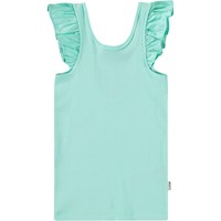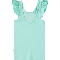 Turquoise hemdje van zacht biologisch katoen. De top heeft een nauwsluitende pasvorm, poplin ruches op de schouders en een lage achterkant.
