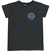 Ranva is een blauw t-shirt met een smiley met pailletten op de borst.