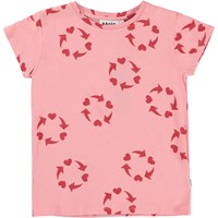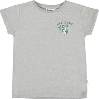 Ranva is een grijs t-shirt met een print van de aarde op de achterkant en de tekst ‘We love you’.