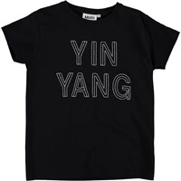 Ranva is een zwart t-shirt met "Ying Yang" op de voorkant in wit genaaid.