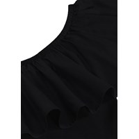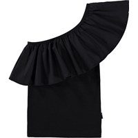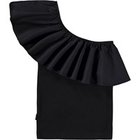 Zwarte one-shoulder top gemaakt van biologisch katoenen jersey heeft een aansluitende pasvorm en een brede poplin ruche die over de schouder en rond de rug loopt.