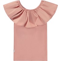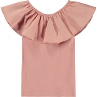 Roze top met een kraag van elastische popeline die omhoog als kraag of van de schouders als mouwen gedragen kan worden. De basis van de t-shirt is gemaakt van 100% katoenen jersey, terwijl de kraag van 100% katoenen popeline is. De top is zeer veelzijdig en voor vele gelegenheden en is slim fit.