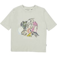 Reen is een steenkleurig t-shirt van biologisch katoen. In het midden van de voorkant staat een print van verschillende dieren die met de hand zijn getekend.