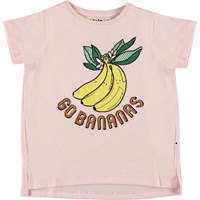 Go bananas in dit roze t-shirt met een bananenprint op de voorkant. Het t-shirt is 100% katoen en heeft zeer korte mouwen.