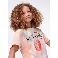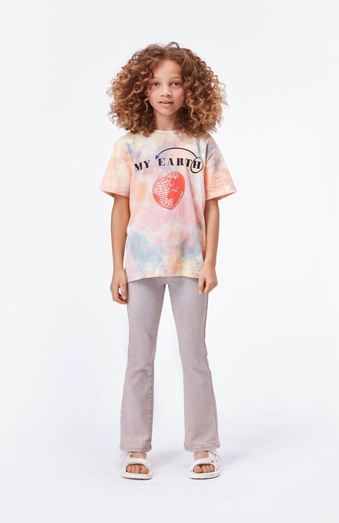 Reeve is een tie-dye t-shirt in pastelkleuren met een hartje print en de tekst 'My Earth' op de voorkant.