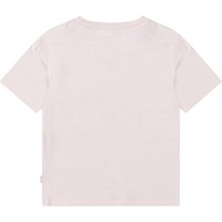 Lichtroze t-shirt in zacht biologisch katoen met een ronde hals en ribboord. Het t-shirt heeft een ruimvallende pasvorm met op de voorkant een roze smiley waarbij de mond het woord 'Freedom' spelt.