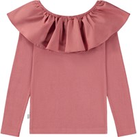 Roze top met lange mouwen met een kraag van elastische popeline die, zowel omhoog als kraag of los van de schouders als mouwen gedragen kan worden. De basis van de top is gemaakt van 100% katoenen jersey, terwijl de kraag van 100% katoenen popeline is. De top is zeer veelzijdig voor vele gelegenheden en is slim fit.