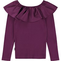 Paarse top met lange mouwen met een kraag van elastische popeline die, zowel omhoog als kraag of los van de schouders als mouwen gedragen kan worden. De basis van de top is gemaakt van 100% katoenen jersey, terwijl de kraag van 100% katoenen popeline is. De top is zeer veelzijdig voor vele gelegenheden en is slim fit.