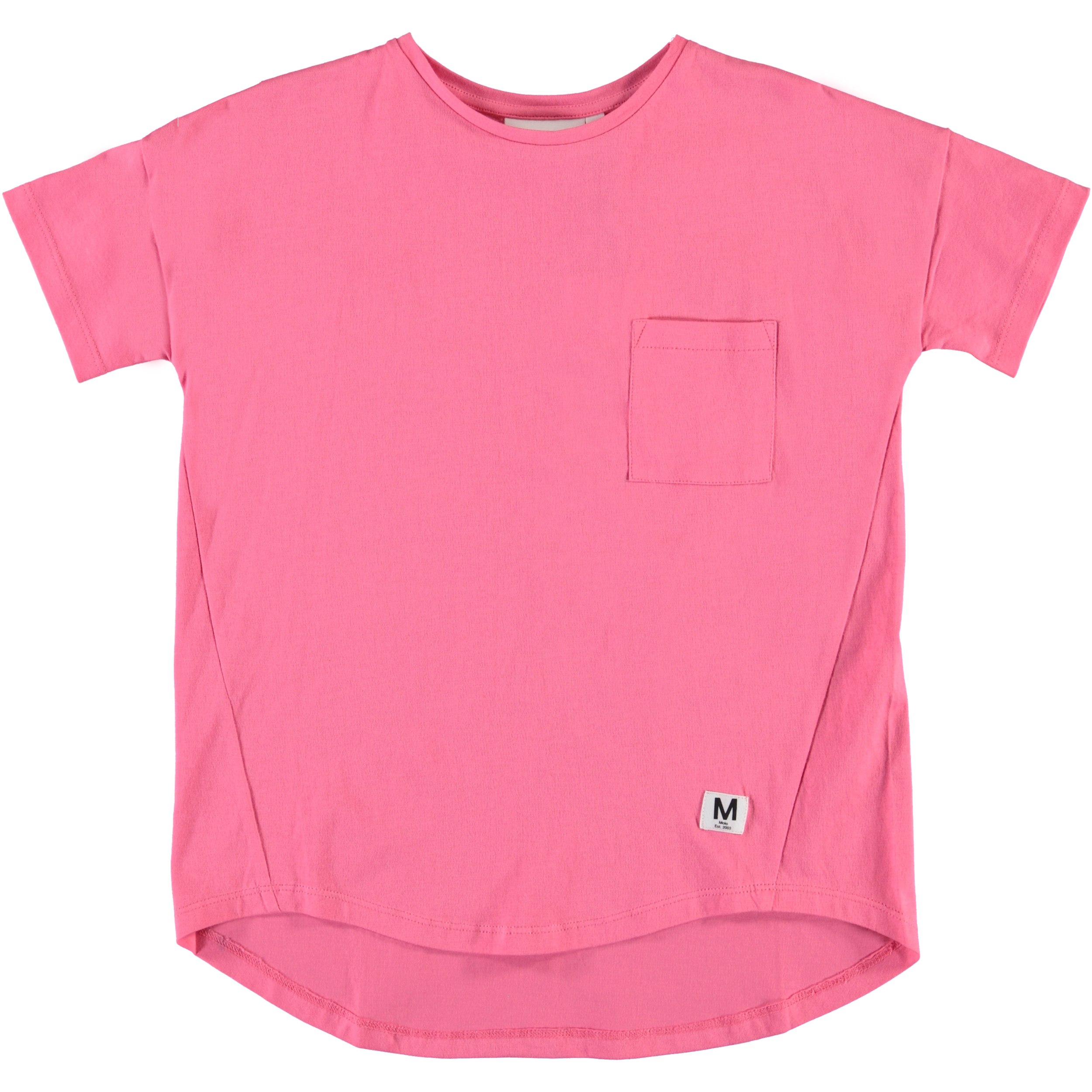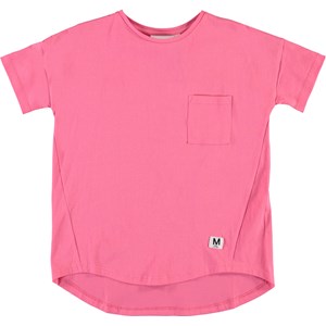 Renessa is een roze t-shirt met een kleine borstzak. Het t-shirt heeft een wijde, losse pasvorm.