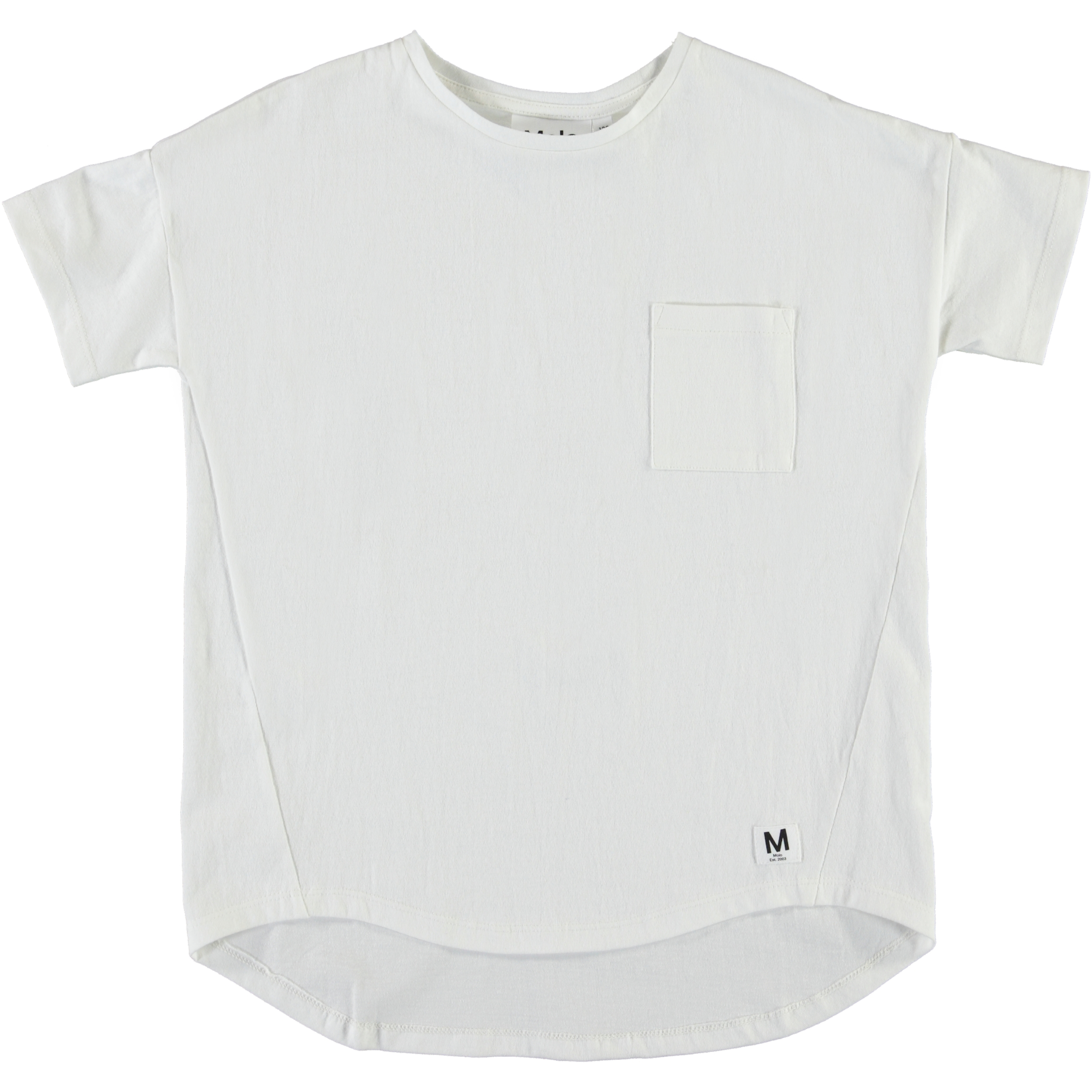 Renessa is een wit t-shirt met een kleine borstzak. Het t-shirt heeft een wijde, losse pasvorm.