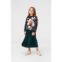 Reniza is een donkerblauwe sweater met een print op de voorkant van een paard dat zijn kop door waterlelies steekt. De trui valt iets ruimer met een mooie vorm.