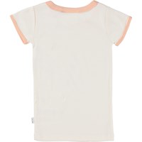 Witte t-shirt met roze boordjes en op de voorkant een print. De print is van een hart dat schijnt als een zon en de boodschap "Good Energy" verspreidt. Dit t-shirt is van 100% katoen, heeft korte mouwen, een ronde hals, een ribboord aan de hals en mouwen en is slim fit.