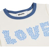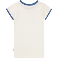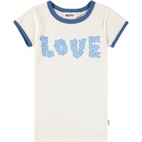 Gebroken wit T-shirt gemaakt van zachte biologische katoen met een ronde hals en blauwe boord. Het T-shirt heeft een aansluitende pasvorm met op de voorkant de tekst LOVE