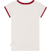 Aansluitende witte t-shirt van biologisch katoen met een prachtige paardenprint. Het t-shirt heeft een bordeauxrode boord rond de hals en mouwen die matcht met de 'Pony Club' tekst op de voorkant.